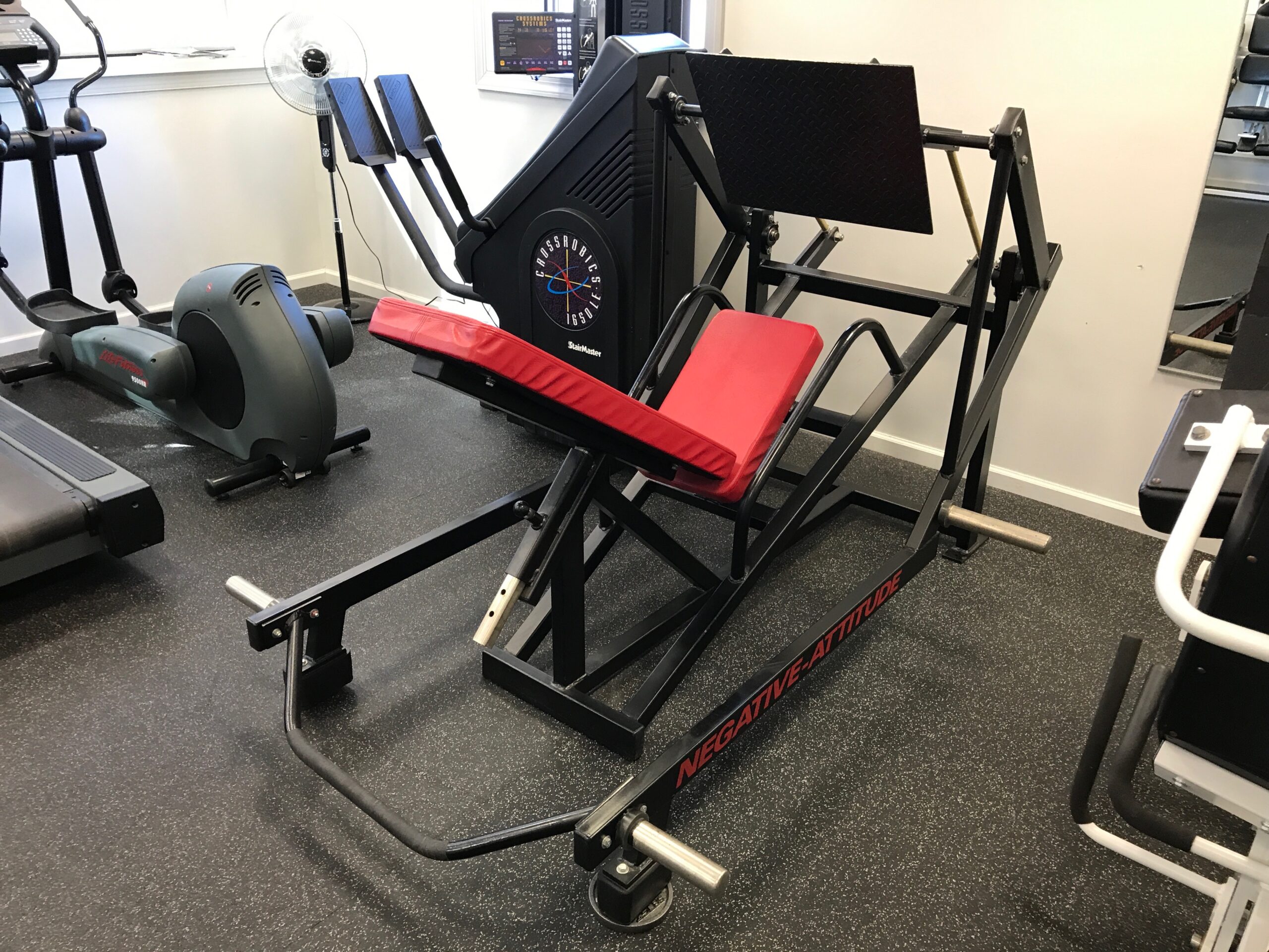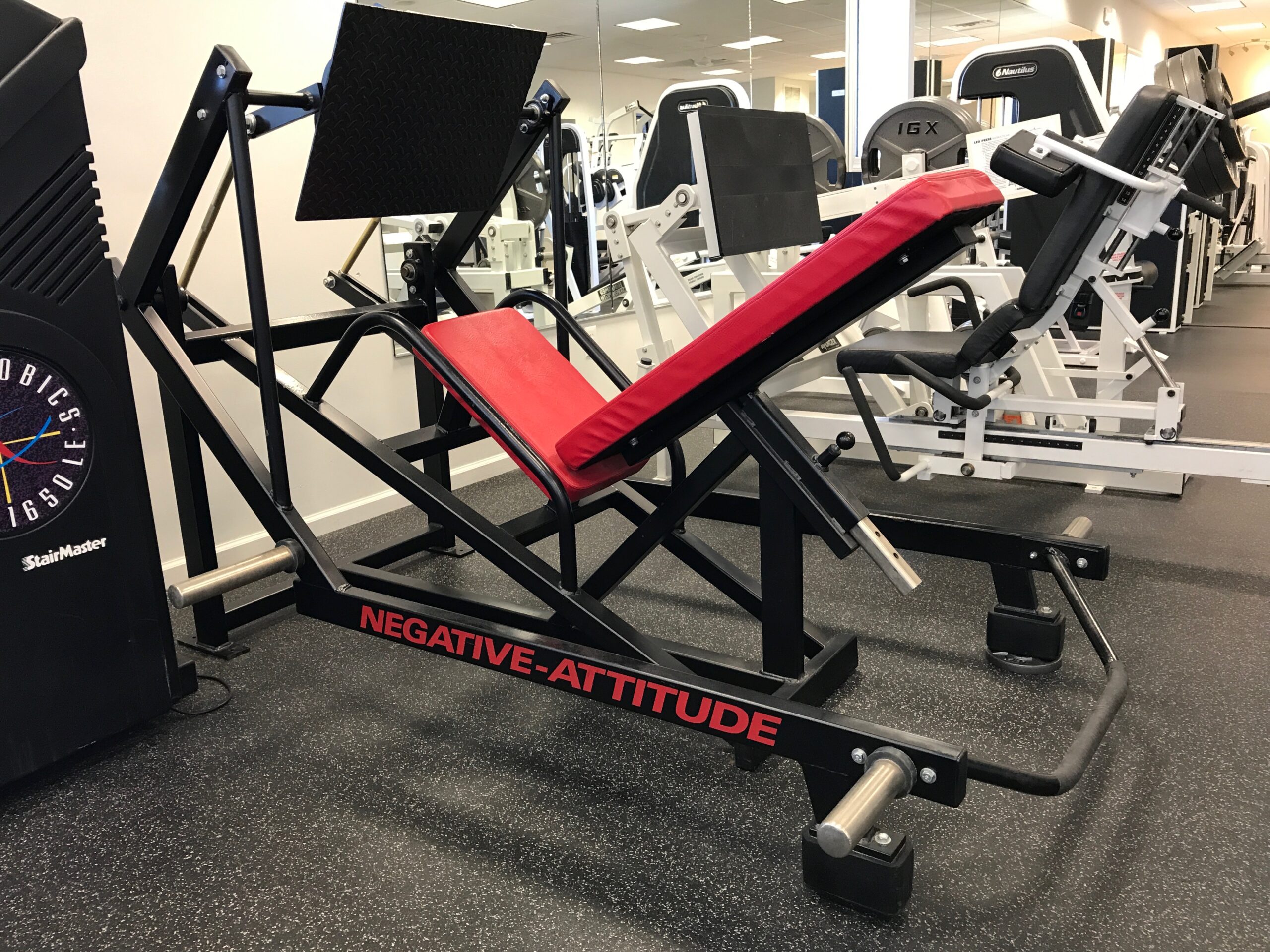 The Negative Attitude line of plate loaded equipment was developed and sold by Randy Rindfleisch. It was designed to allow a trainer or training partner to easily assist with negative-only, forced-negatives, hyper, and other protocols using a long assist lever arm.